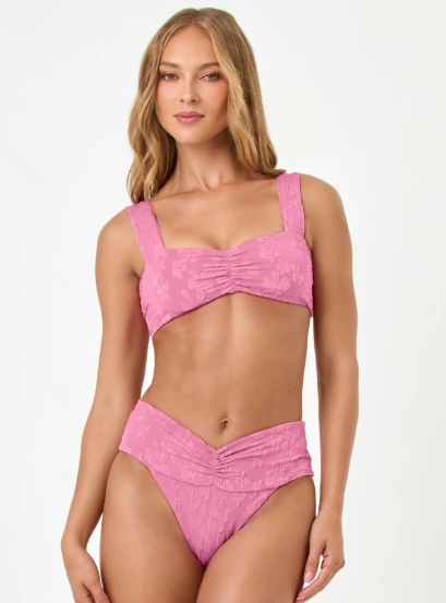 Elevate your traditional high-waisted bikini bottoms with the Bardot. These beauties have perfectly-placed ruching and a v-front to accentuate all of your gorgeous curves. We've never released a print in this best-selling style, so be sure to add our hot pink floral version to your cart!