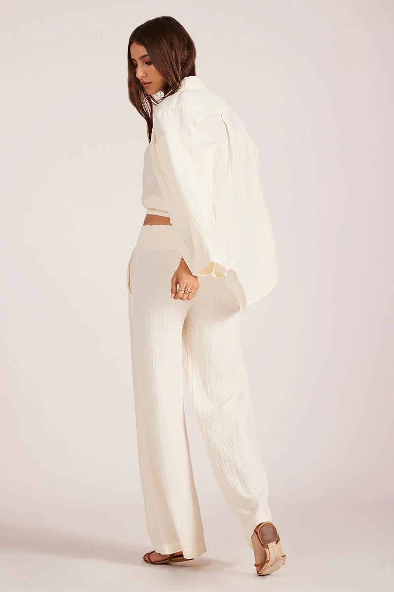 Light, airy, and endlessly wearable. This button front top is perfect for layering over swim, pairing with denim, or styling with matching gauze bottoms.