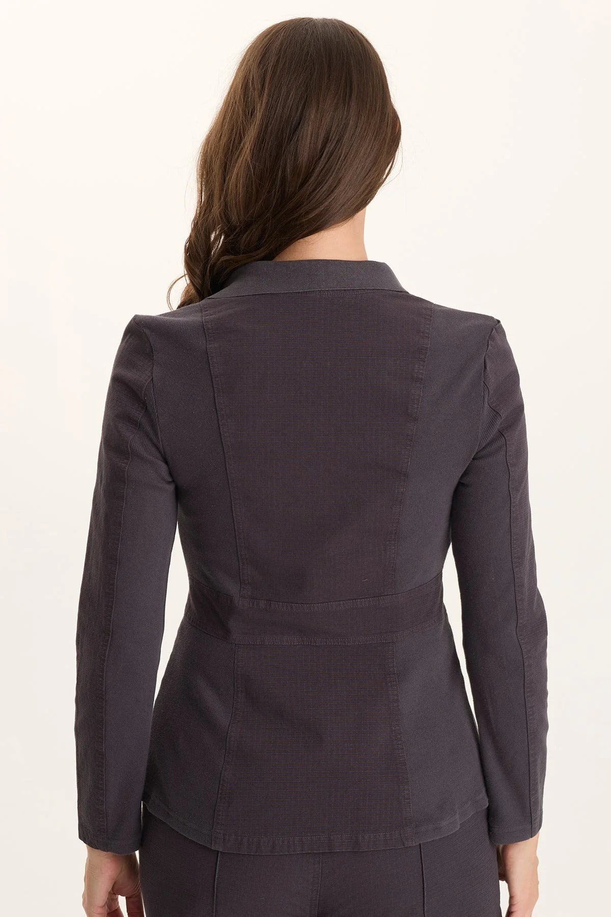 In our new unique, ultra-sturdy "Stretch Ripstop" fabric, Lochlyn is an unforgettable blazer. With a snap-up "belted" center, Locklyn offers a contoured, flattering fit with a fabric that hugs and smooths just-so. Four envelope pockets with antique brass hardware finish up the detail on this unexpected style.
